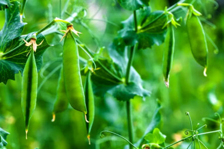 Garden peas, snap peas, and snow peas are natural climbers that love vertical supports. Their delicate vines grab onto mesh or twine easily. Growing peas upward keeps pods clean and makes harvesting quick.