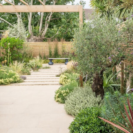 8. Framed walkways and structured planting for modern garden flow