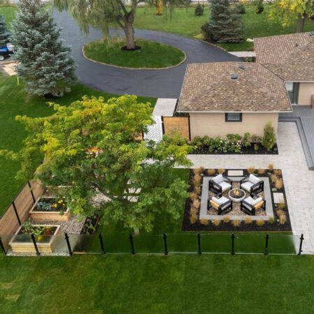 10. Fire feature focal point in a modern outdoor living space