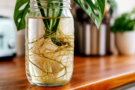 Certain plants such as pothos, philodendron, and monstera root quickly using this method. Once the roots are about two inches long, transfer the cutting into soil. Keep the soil slightly moist for the first few weeks to help the plant adjust.