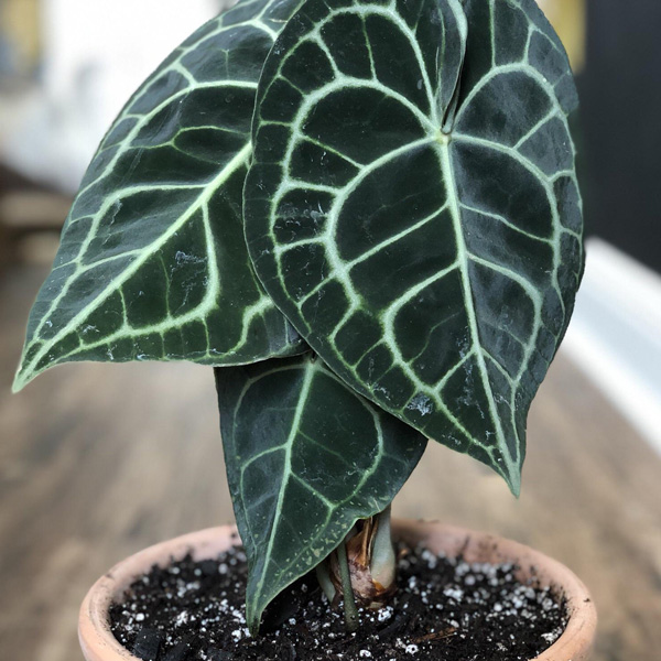 This velvet-leaved plant is loved for its heart-shaped leaves outlined by prominent white veins. It thrives in a warm, humid environment and prefers soil that drains well but retains some moisture. A bright location without direct sunlight keeps its leaves lush and vibrant.