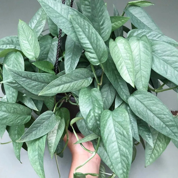 Cebu blue pothos brings a subtle silver-blue hue to traditional pothos foliage. It grows quickly, trailing or climbing depending on how it’s supported. Provide moderate light and let the soil dry slightly between waterings to keep its leaves healthy and vibrant.