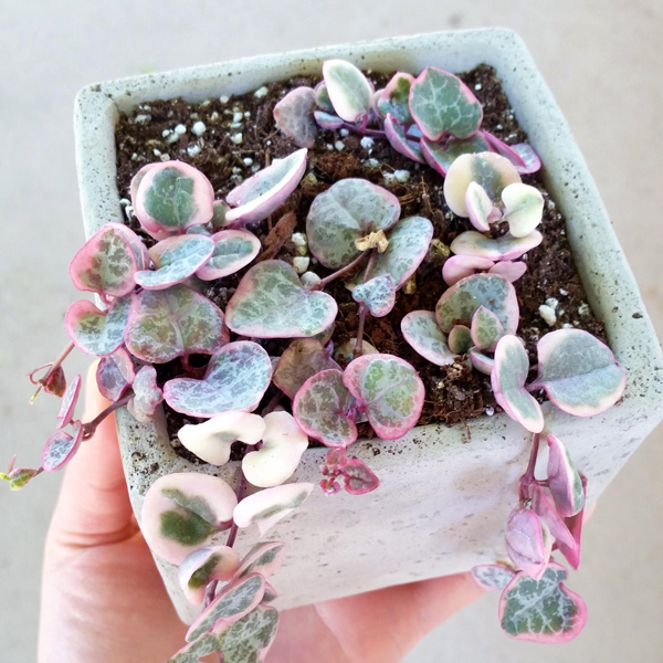 This delicate trailing plant features heart-shaped leaves with pink, white, and green tones. It looks beautiful cascading from shelves or hanging baskets. Give it bright, indirect light and water sparingly, allowing the soil to dry out before watering again.